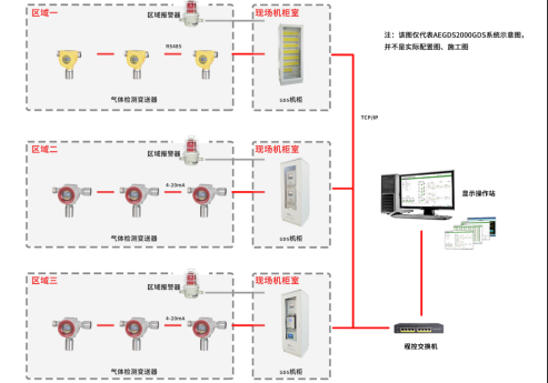 區(qū)域控制層:配置 AEGDS2000 雙屏機柜,最大支持 500 路 RS485 信號接入,通過 60 分區(qū)管理功能,精準定位泄漏區(qū)域(如合成車間 B 區(qū)第 5 工位)。