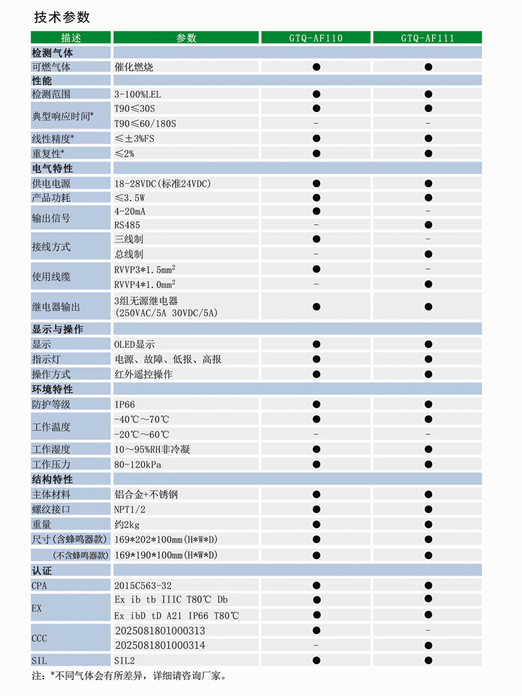 注:不同氣體產(chǎn)品可能存在差異,詳情咨詢廠家。