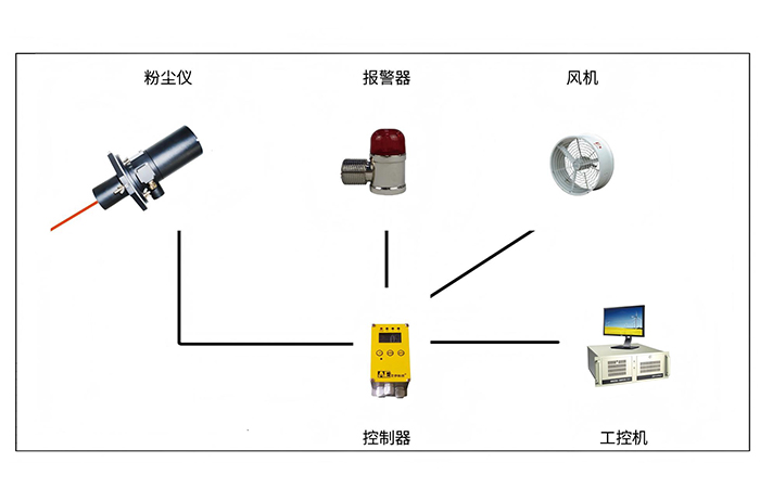 3、可配套風(fēng)機(jī)、聲光報(bào)警器等,當(dāng)粉塵濃度超標(biāo)時(shí),實(shí)現(xiàn)自動(dòng)報(bào)警提醒、自動(dòng)排風(fēng)等功能