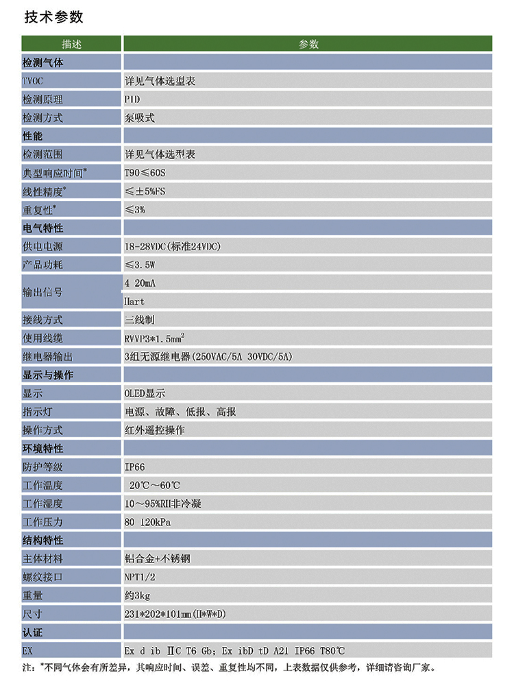艾伊科技AG316氣體檢測(cè)變送器適用于檢測(cè)危險(xiǎn)區(qū)城中TVOC氣體的含量。產(chǎn)品采用聲光報(bào)警一體化設(shè)計(jì),可有效預(yù)警TVOC氣休泄?jié)M危險(xiǎn);模塊化設(shè)計(jì),維護(hù)方便;產(chǎn)品配有紅外通控器,可實(shí)現(xiàn)完全無(wú)開蓋操作。IP66防護(hù)等級(jí)可適用于各類惡劣場(chǎng)合。產(chǎn)品采用內(nèi)置泵設(shè)計(jì),可準(zhǔn)確檢測(cè)揮發(fā)性有機(jī)物。
