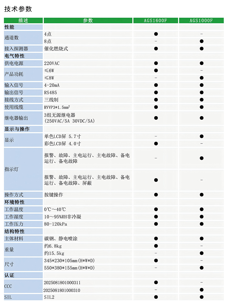 | 可燃?xì)怏w報(bào)警控制器 艾伊科技AGS1600F型可燃?xì)怏w報(bào)警控制器專用于配接固定式可燃?xì)怏w探測(cè)器使用。產(chǎn)品及對(duì)應(yīng)探測(cè)器均通過(guò)國(guó)家CCC消防認(rèn)證,可實(shí)現(xiàn)監(jiān)測(cè)報(bào)警,并且內(nèi)置開關(guān)量,實(shí)現(xiàn)控制連鎖設(shè)備功能。根據(jù)不同的需求,廣泛應(yīng)用于石油、化工、能源、鋼鐵、冶金、燃?xì)獾刃袠I(yè)。 產(chǎn)品通過(guò)國(guó)家CCC消防認(rèn)證。 大屏幕LCD圖像顯示,顯示內(nèi)容豐富。 內(nèi)置多組開關(guān)量,可實(shí)現(xiàn)連鎖控制功能。 內(nèi)置UPS電源,可防止意外斷電導(dǎo)致的安全隱患。 壁掛式碳鋼外殼,堅(jiān)固耐用。 可與GTYQ-Anr、GTQ-AF系列可燃?xì)怏w探測(cè)器配套組成氣體報(bào)警系統(tǒng)。